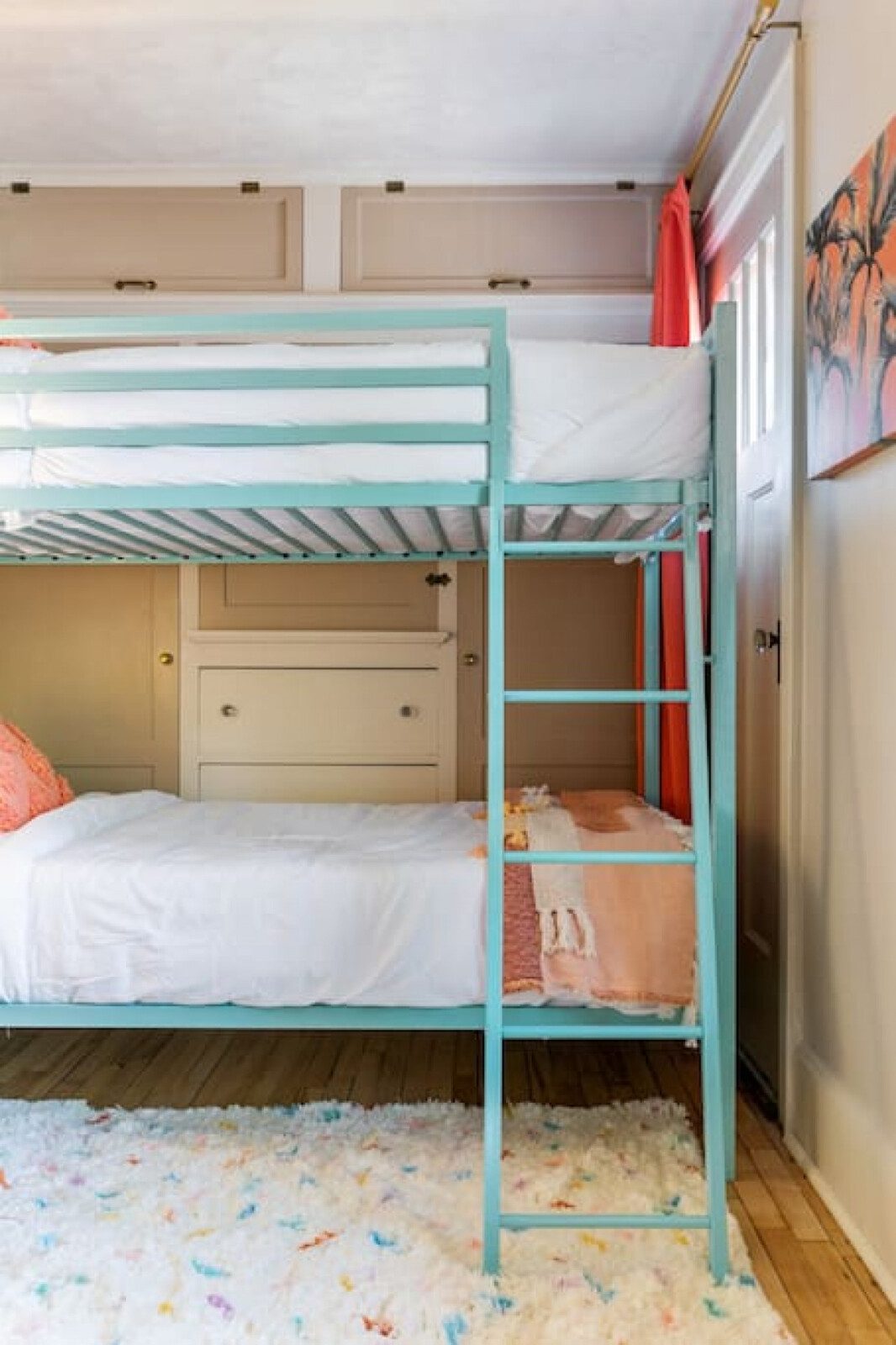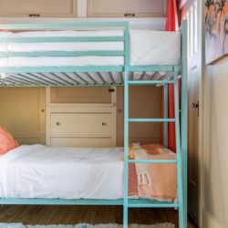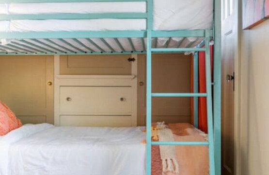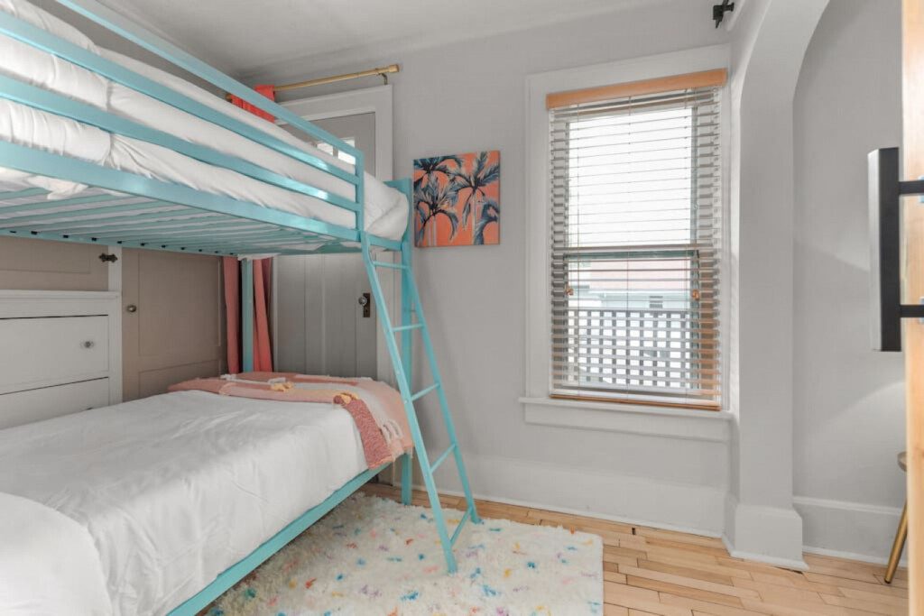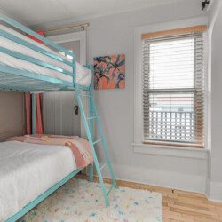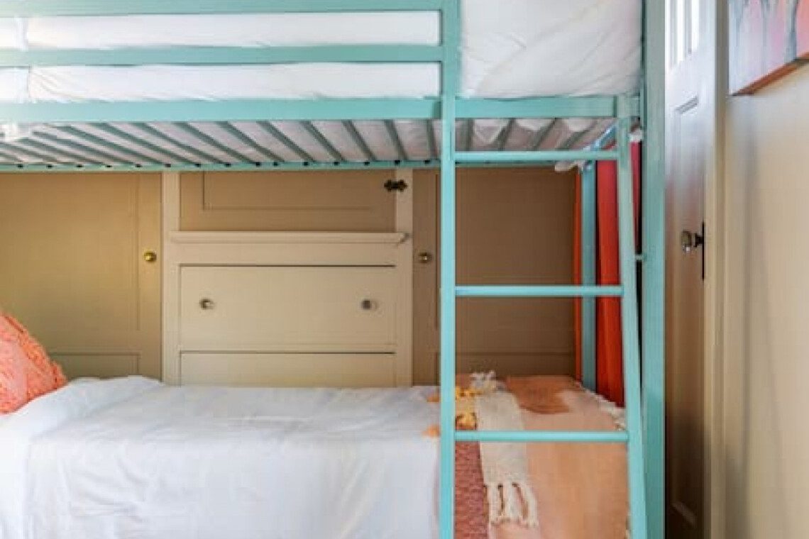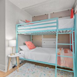 Bedroom 5: Upstairs. Twin bunk bed. No closet or dresser for storage space. There is additional storage space for clothing in Bedroom 4, which is adjacent to Bedroom 5 through a barn door.