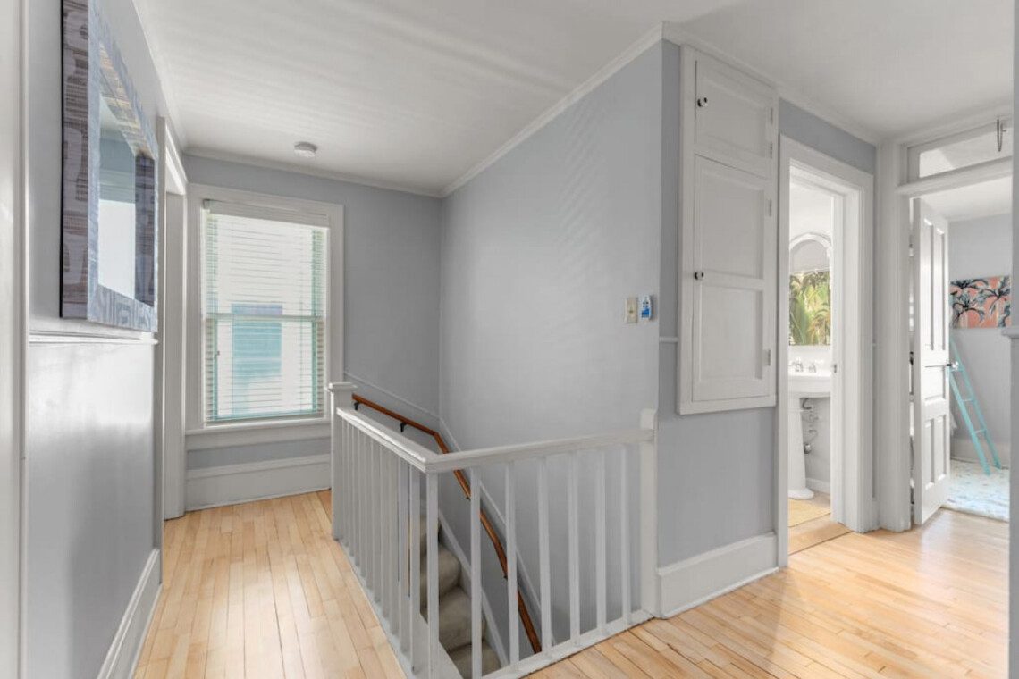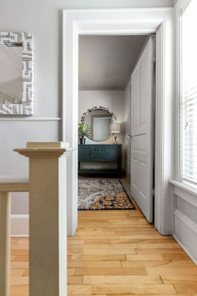 The home was built in 1900 so the stairway from the main floor to the second floor is steep, and the stairs at the top are narrow on one side.
