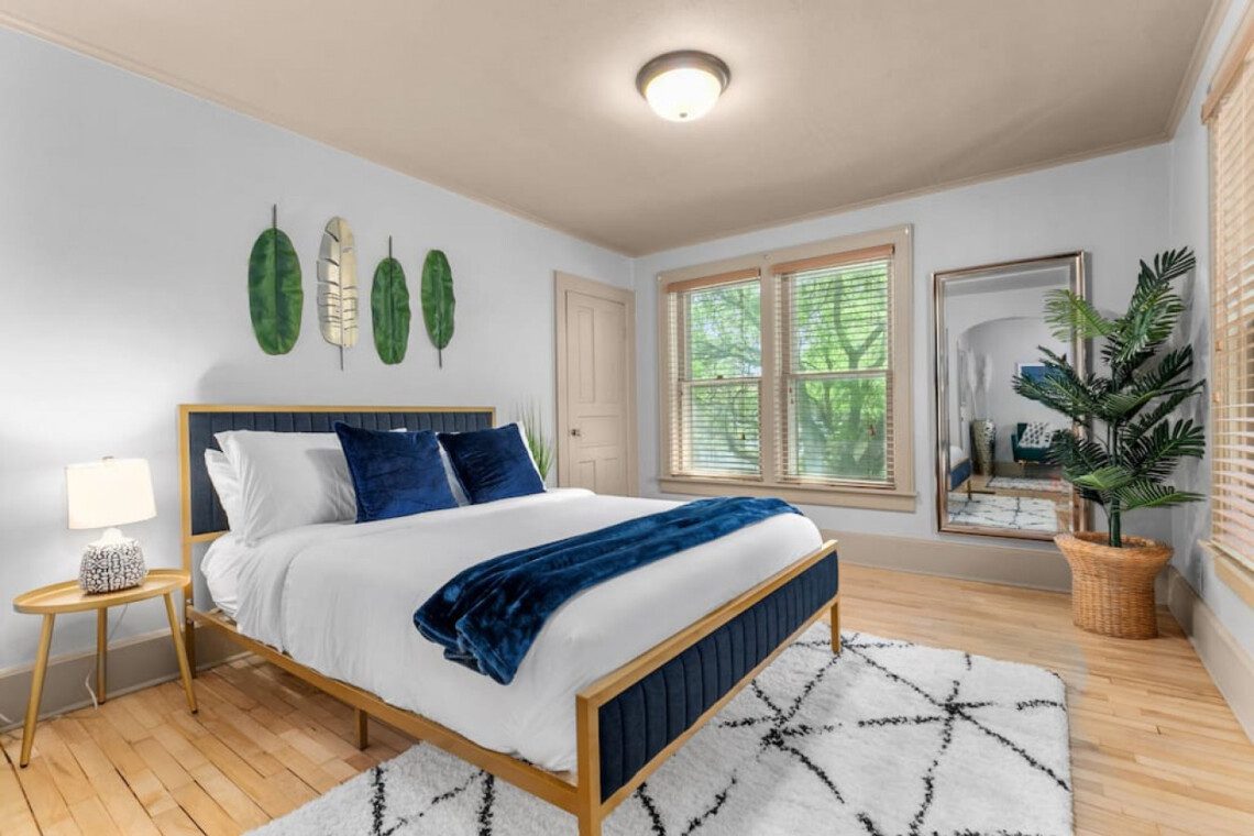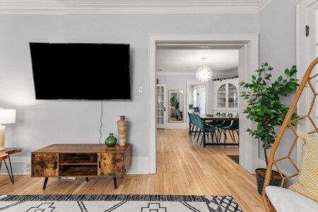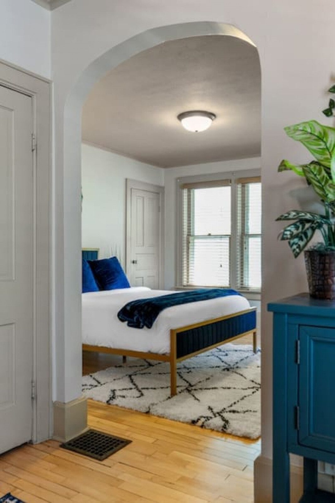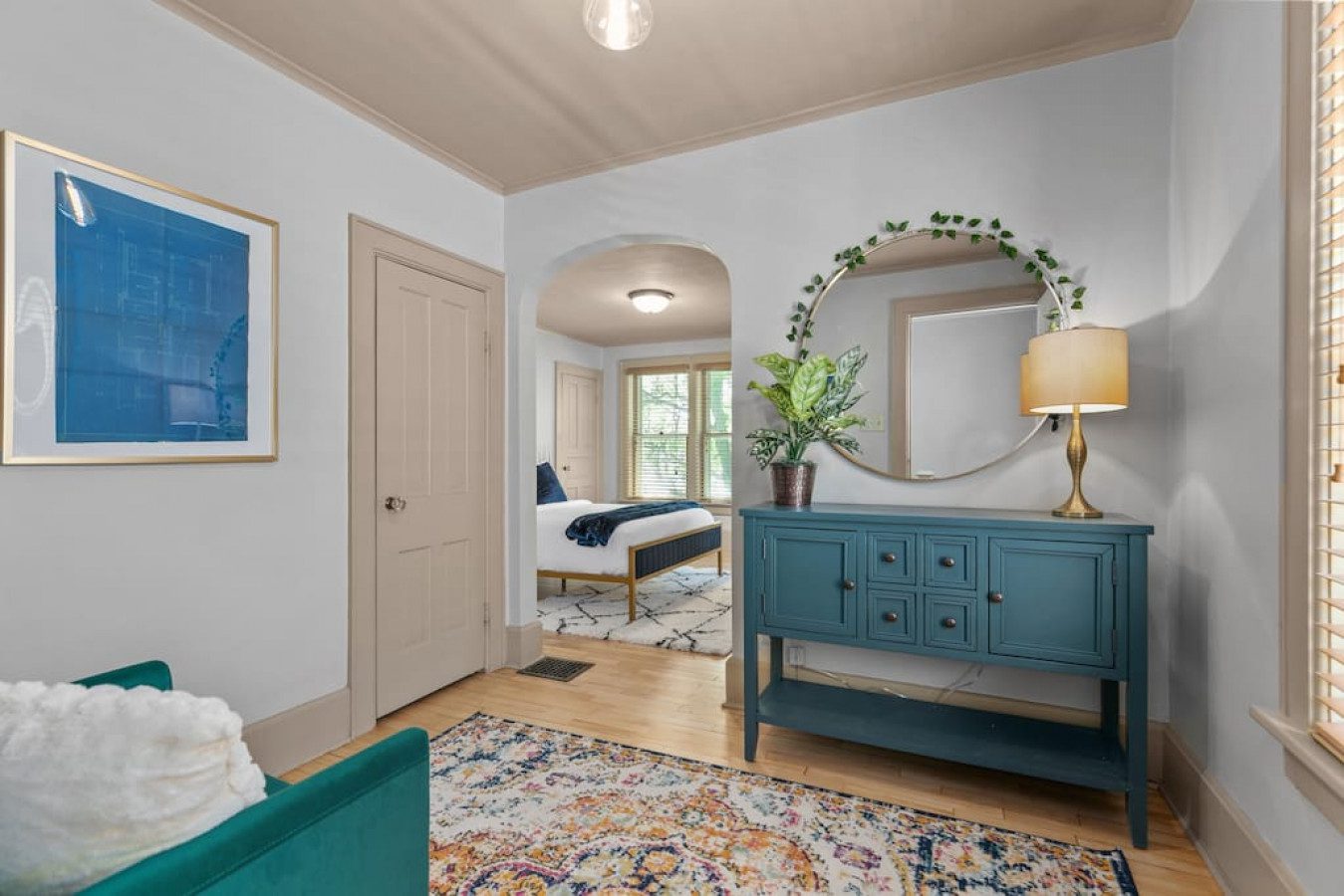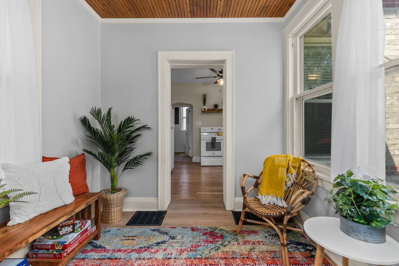 This spacious and beautifully renovated character home is only a 30 min drive to Oshkosh & Road America! Upon entry you are welcomed by arched doorways and restored original hardwood floors. Original glass knobs, built-ins and French doors! New memory foam mattresses and 43” Roku TVs in all bedrooms. 65″ Roku TV in living area. Kitchen is fully stocked to prepare meals. Enjoy your morning beverage from the coffee and tea bar while relaxing in the sunroom. We are pet friendly!