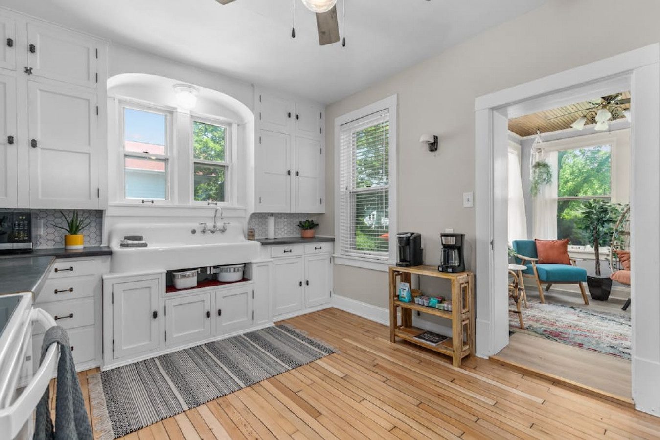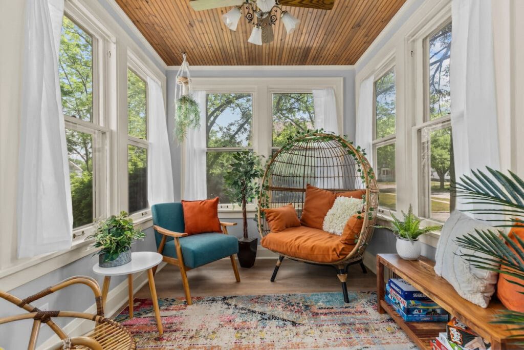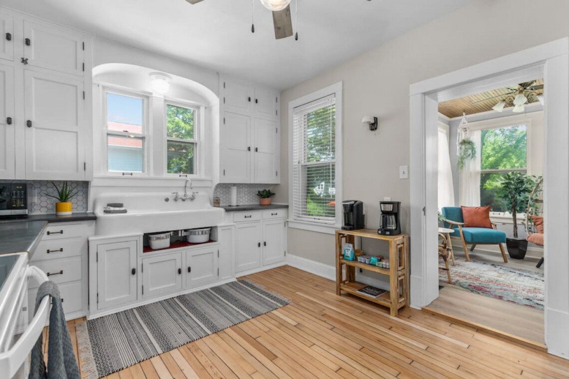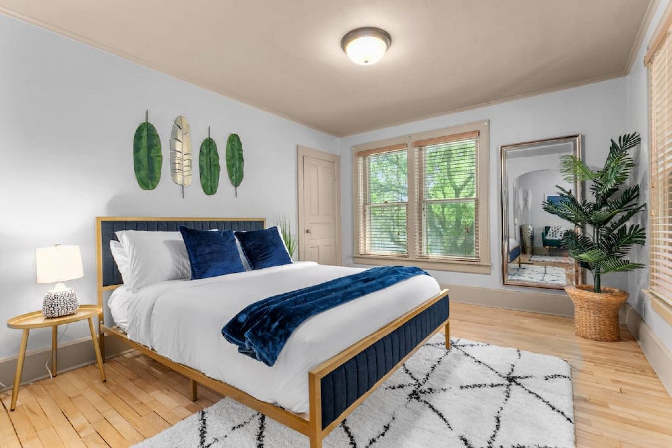 This spacious and beautifully renovated character home is only a 30 min drive to Oshkosh & Road America! Upon entry you are welcomed by arched doorways and restored original hardwood floors. Original glass knobs, built-ins and French doors! New memory foam mattresses and 43” Roku TVs in all bedrooms. 65″ Roku TV in living area. Kitchen is fully stocked to prepare meals. Enjoy your morning beverage from the coffee and tea bar while relaxing in the sunroom. We are pet friendly!