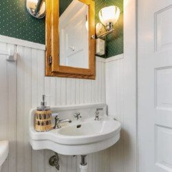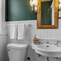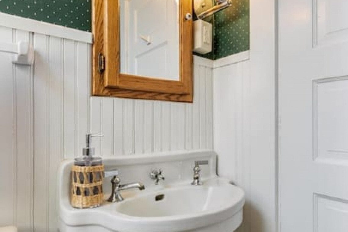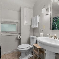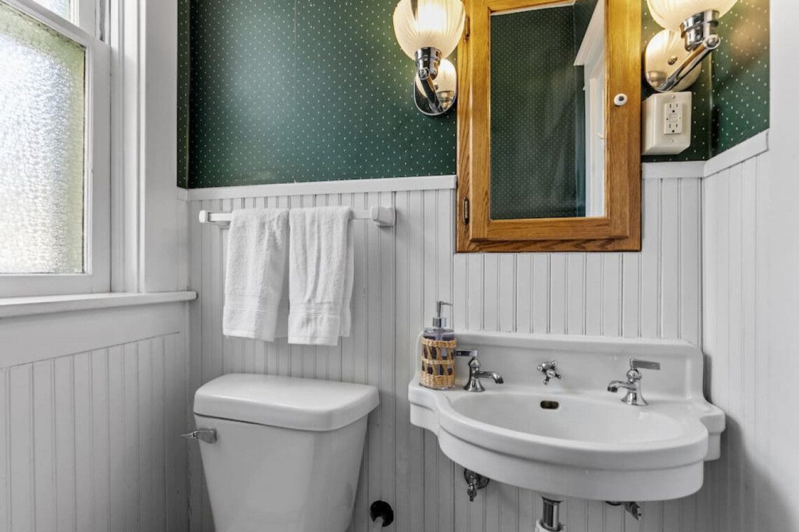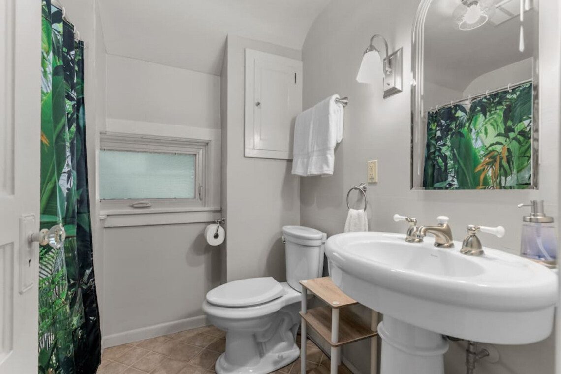 First bathroom (half bath) is located off the kitchen. Second bathroom with a full bathtub shower is upstairs, and is stocked with shampoo, conditioner and body wash! Makeup towels are available along with a hair dryer.