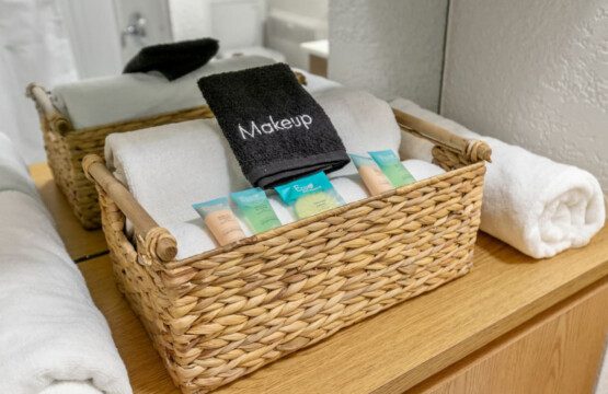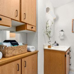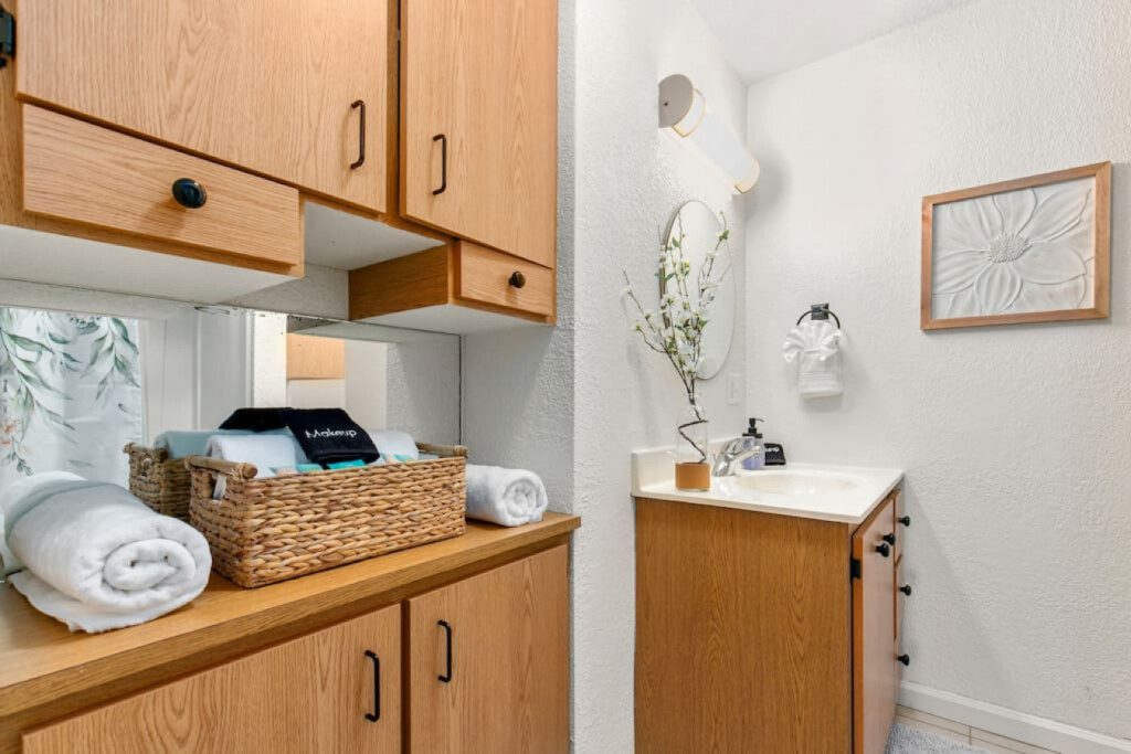 Bring out your inner chef in the fully stocked kitchen using Greenware pots & pans and silicone utensils. A starter supply of paper towels and dish soap are provided.