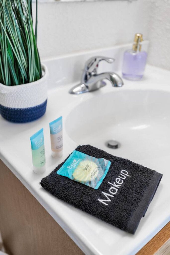 Bring out your inner chef in the fully stocked kitchen using Greenware pots & pans and silicone utensils. A starter supply of paper towels, dishwasher pods, dish soap, and toilet paper are provided.