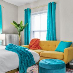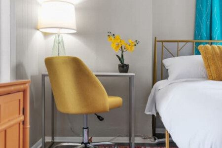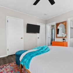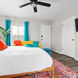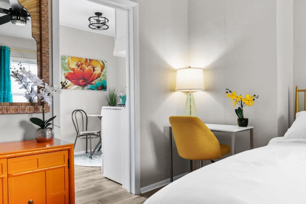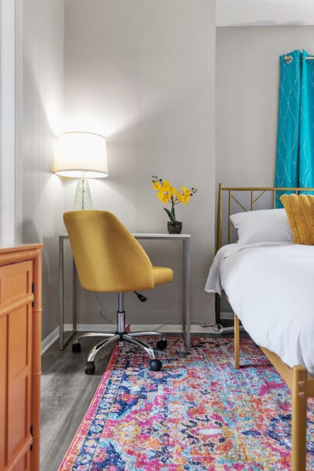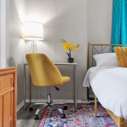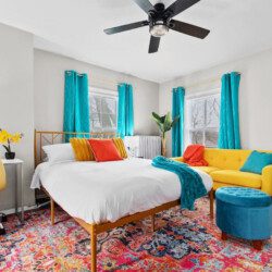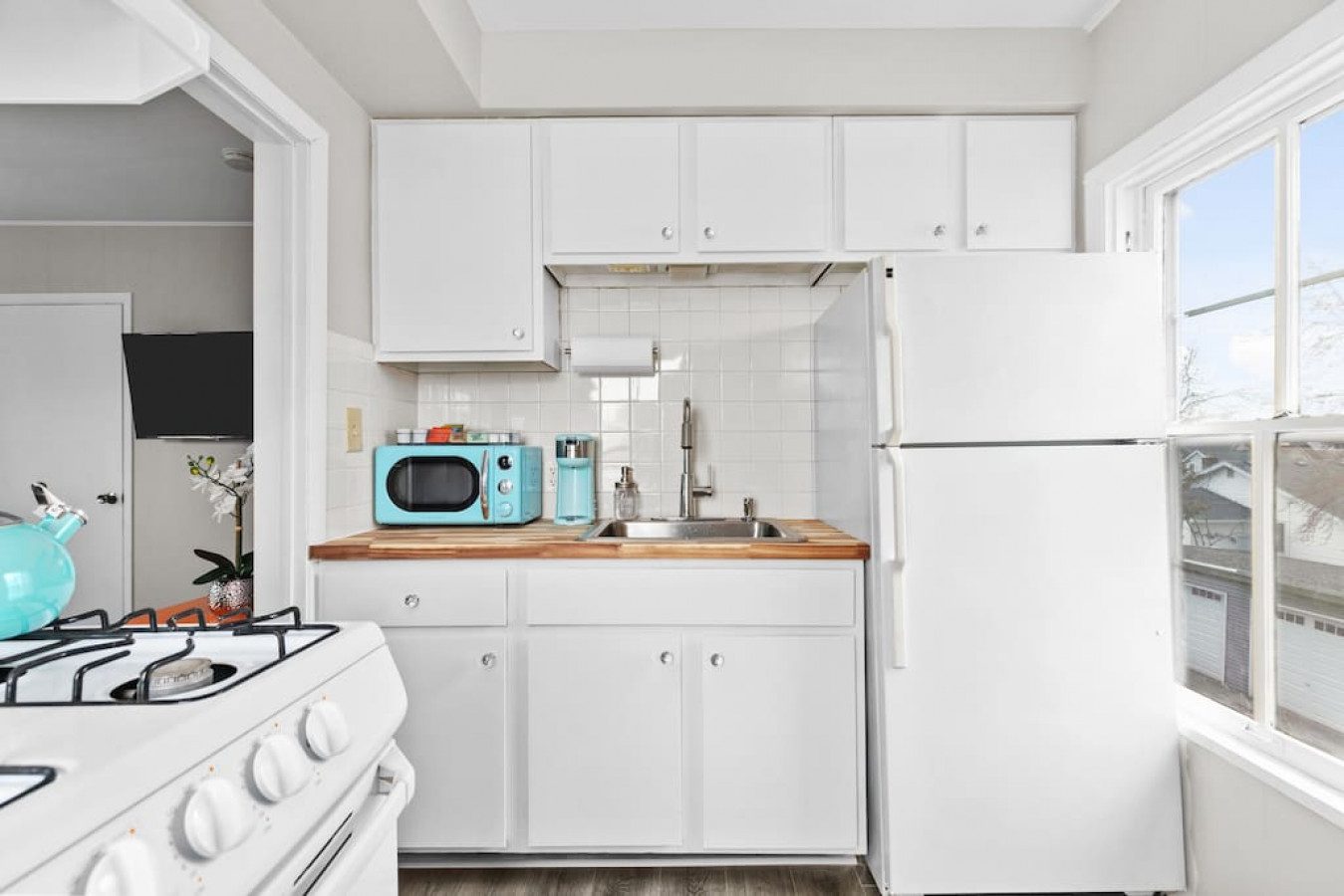 Studio with a new memory foam queen mattress. The 43″ Roku Smart TV is setup in guest mode for you to login to your preferred streaming services! Room darkening shades for daytime sleep!