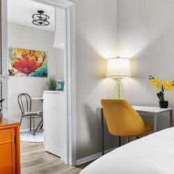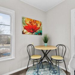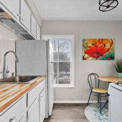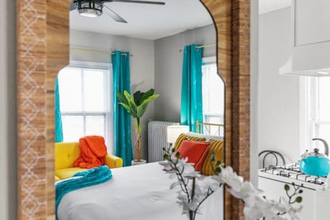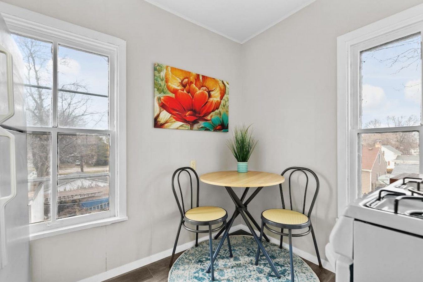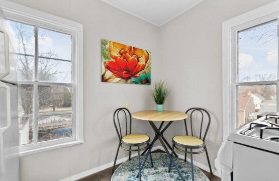 Historic charm meets bright and chic in this newly updated studio apartment! Relax and unwind on brand new furnishings including a queen memory foam mattress and loveseat. 43″ Roku TV, desk area, and high speed wifi are available. Enjoy the coffee and tea bar. Bistro table for two. Free laundry and parking onsite. Enjoy this beautiful old home on Historic Doty Island in Neenah. Only 15 minutes to Oshkosh, 20 minutes to downtown Appleton and 40 minutes to Green Bay! Pet friendly!