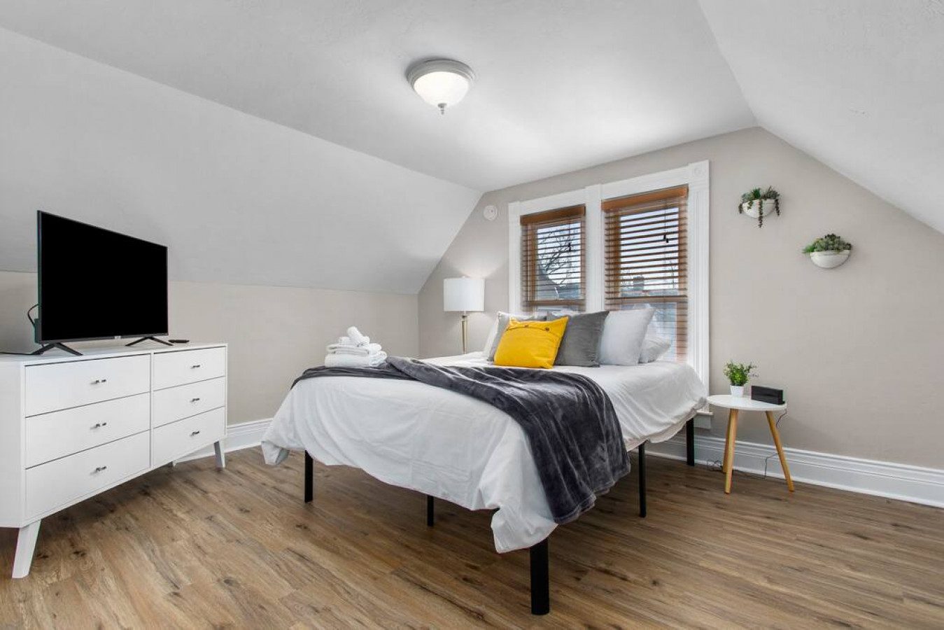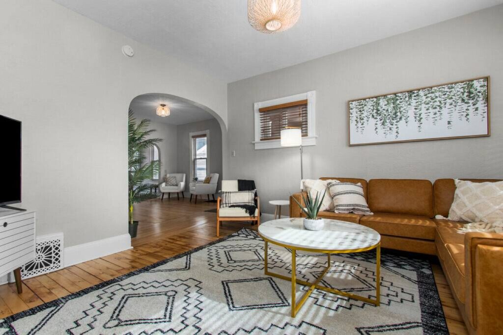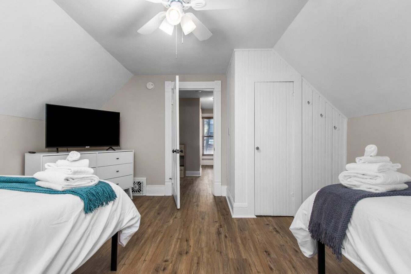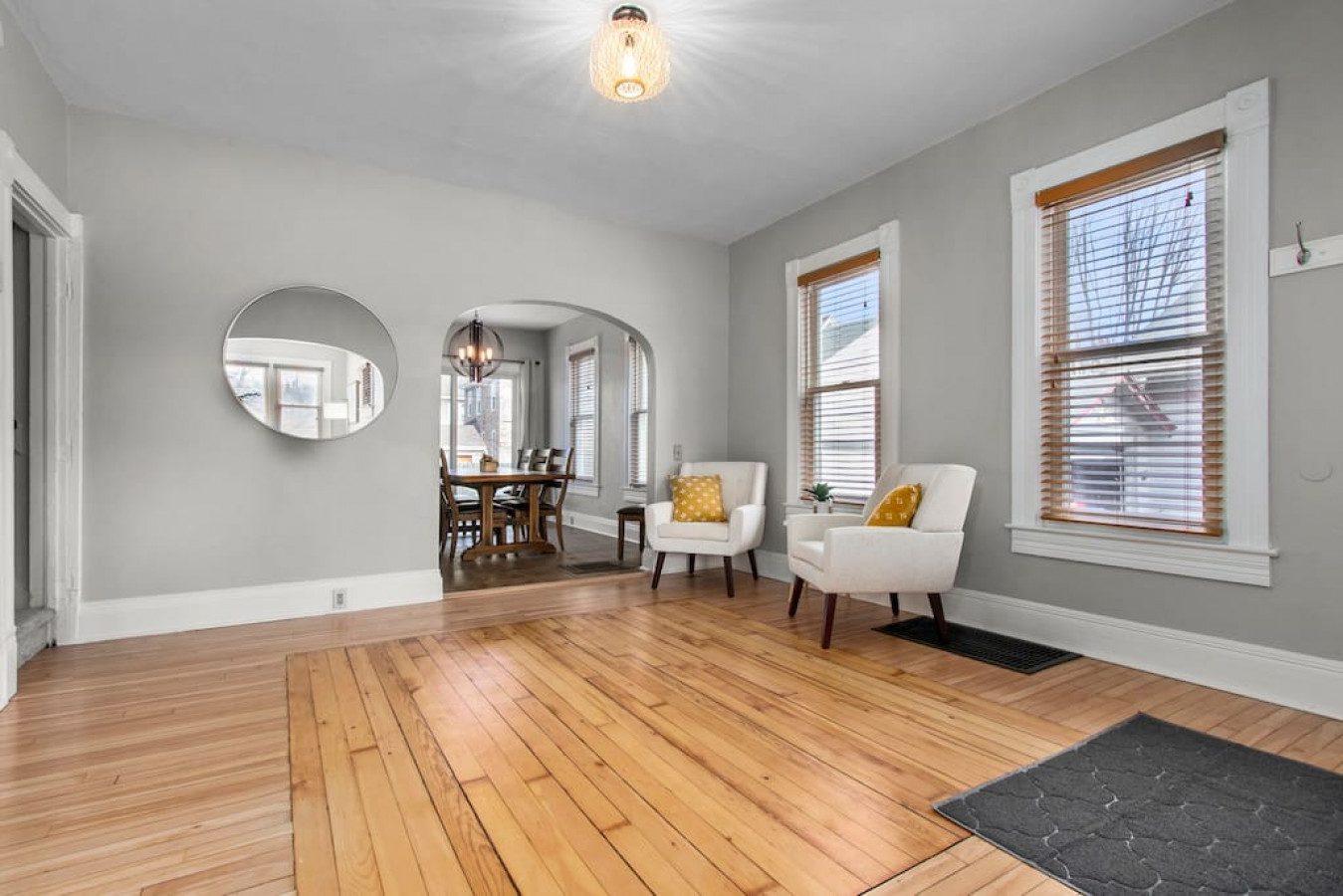 Beautifully renovated and spacious character home only 2 min drive to downtown Appleton and 30 min drive to Green Bay and Oshkosh! Upon entry you are welcomed by arched doorways and restored original hardwood floors. Old charm meets new in the recently updated kitchen, bedrooms and bathrooms. New memory foam mattresses and 43” Roku TVs in all bedrooms. 55″ Roku TV in living area. Kitchen is fully stocked. Enjoy the coffee & tea bar! We are pet friendly!
