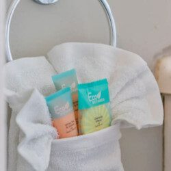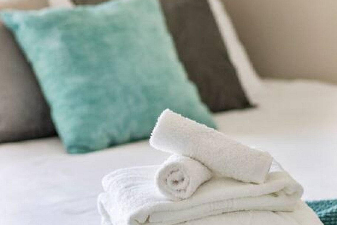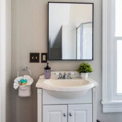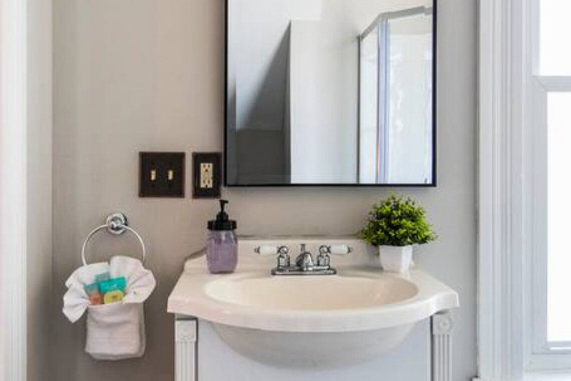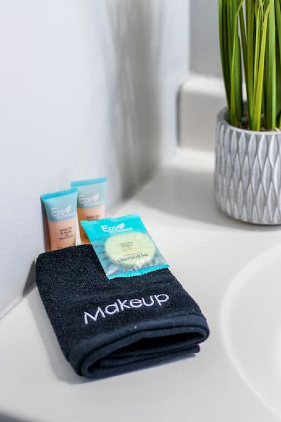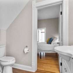 Second full bathroom with stand-up shower is upstairs. Both bathrooms are stocked with shampoo, conditioner and body wash. Makeup towels are available in both bathrooms along with hair dryers. All bedrooms include additional towel hooks as bathrooms have limited space for drying towels.