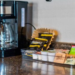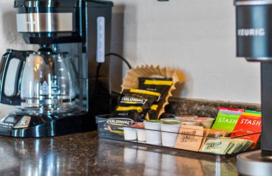 Enjoy your morning beverage of choice at the coffee & tea bar! A Keurig and 12 cup coffee maker are available. We provide a starter pack of ground coffee, k-cups, tea, creamer, sugar and stevia.