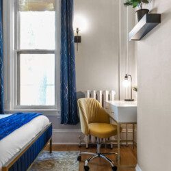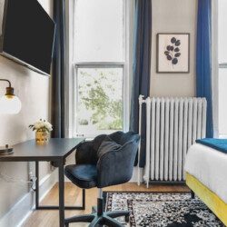 Both bedrooms have new queen memory foam mattresses and 43″ Roku smart TVs. Room darkening shades have been installed for restful daytime sleep!