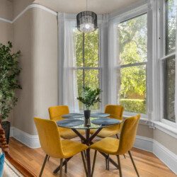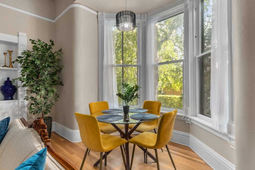 Bring out your inner chef in the fully stocked kitchen using Greenware pots & pans and silicone utensils. A starter supply of paper towels and dish soap are provided. The dining area has a table with 4 chairs.