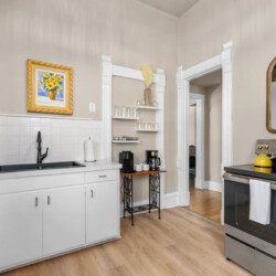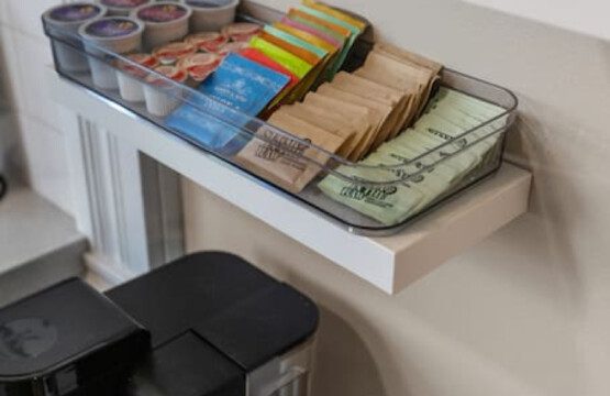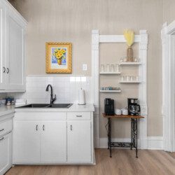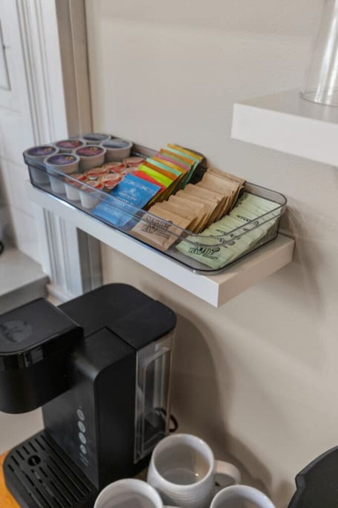 Enjoy your morning beverage of choice at the coffee and tea bar! A Keurig is available, and we provide a starter set of k-cups, tea, creamer, sugar and stevia.