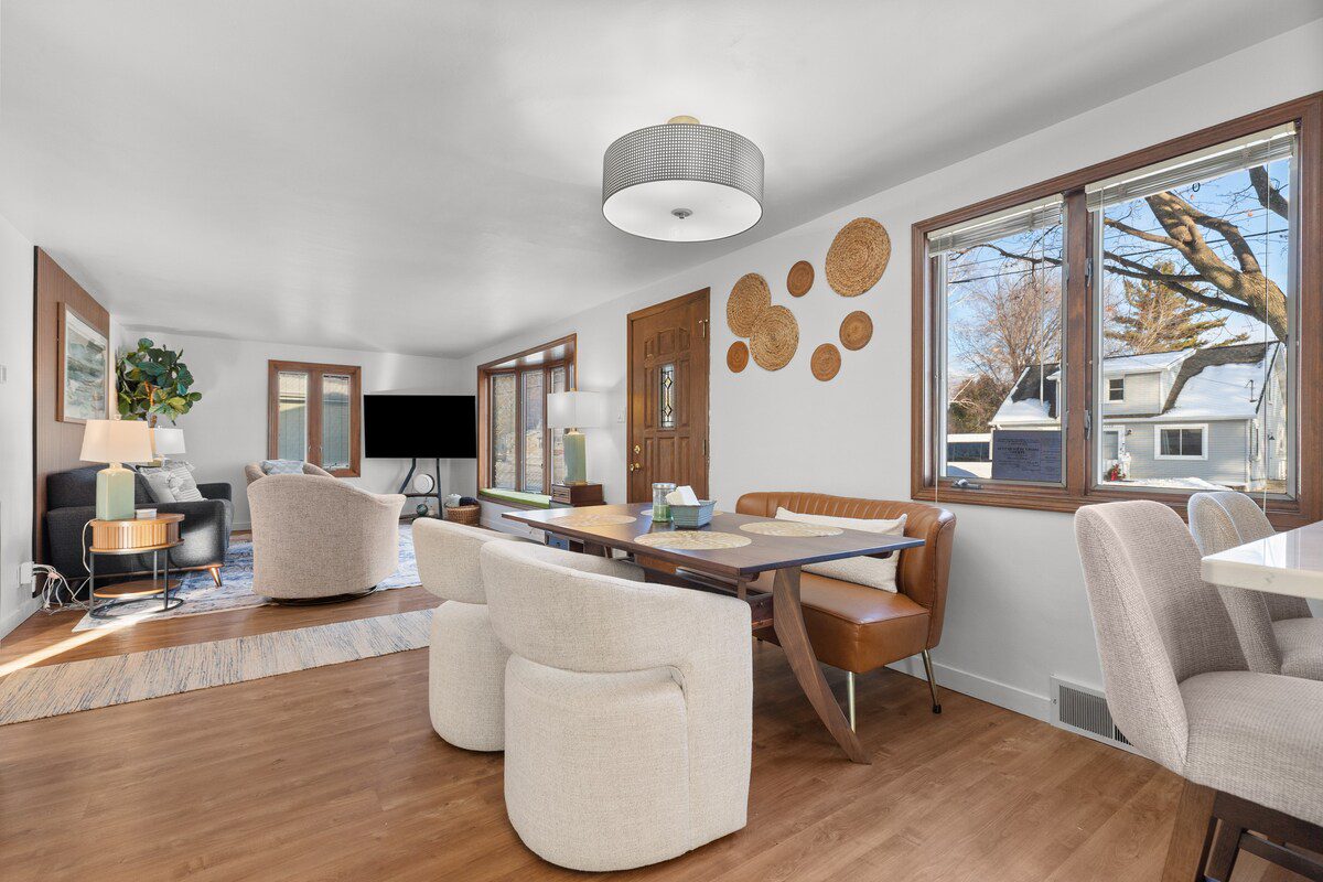 Spacious, beautifully updated, pet-friendly home just a few minutes from Lambeau Field and the Resch Center. Relax in cozy bedrooms and updated bathrooms, or start your day at the coffee bar. The fully stocked kitchen and dining/coffee space make entertaining easy. Enjoy the bright and peaceful sunroom, step into the backyard for grilling and fun games, or head to the basement entertainment area for movies, games, and more. Perfect for families, friends, or anyone looking to explore and unwind.