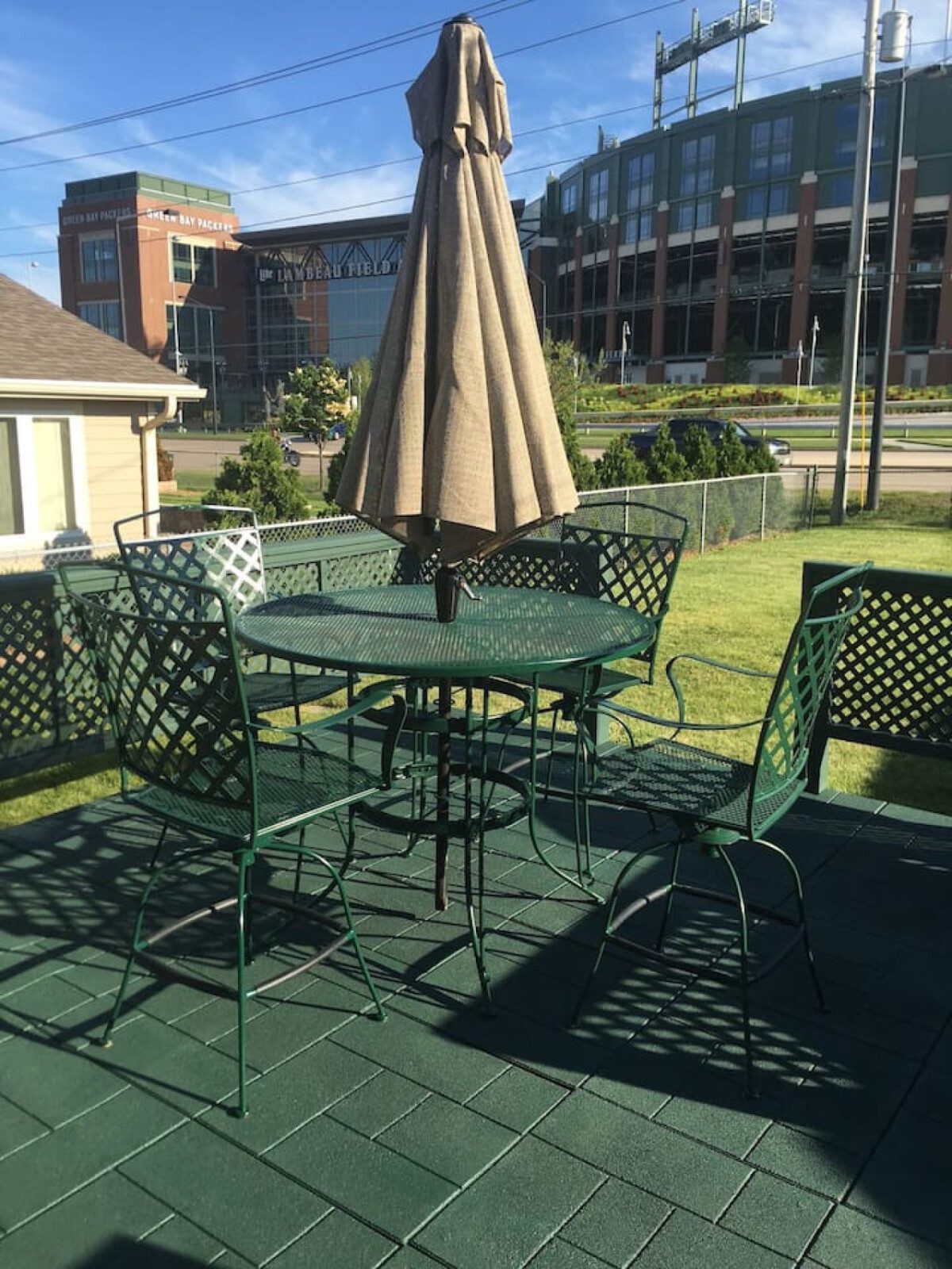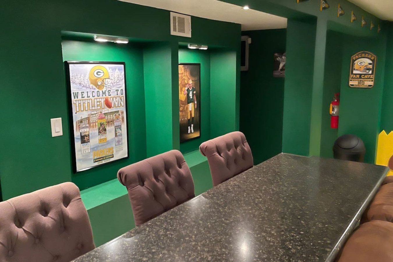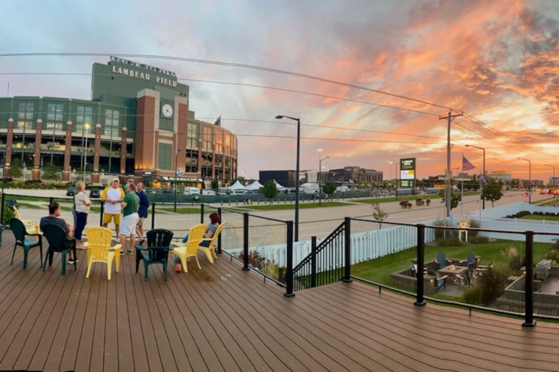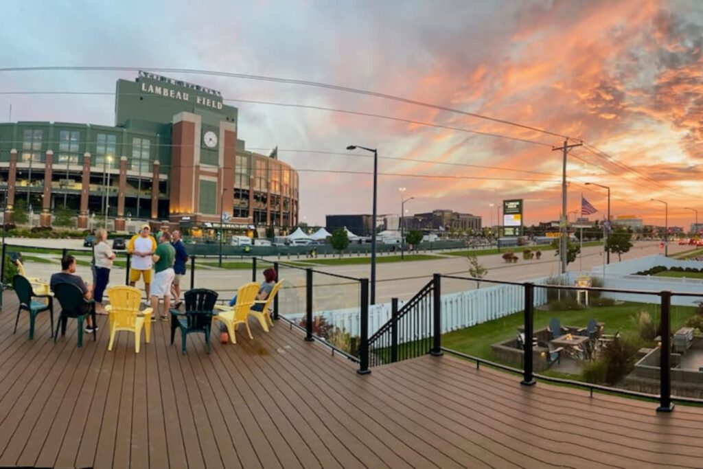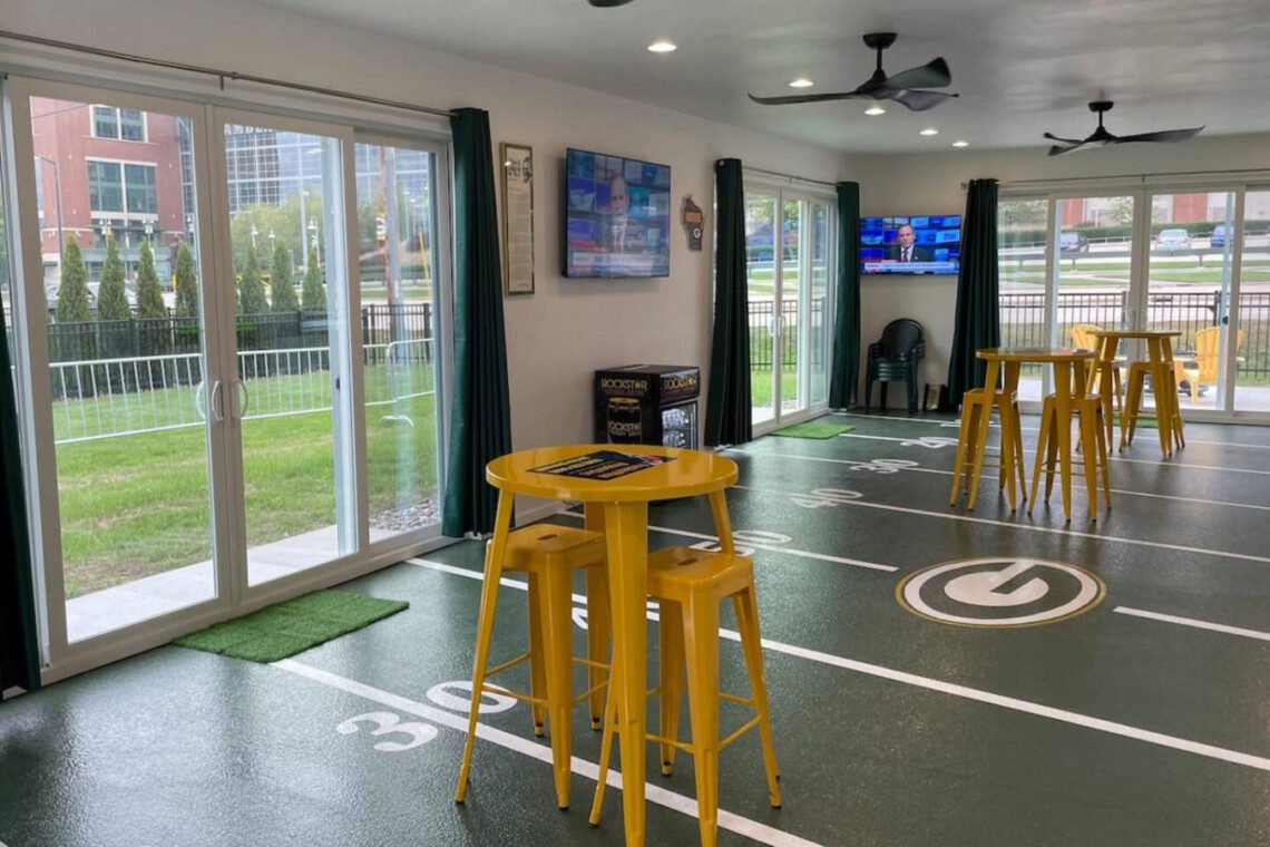 Kick off your Green Bay getaway in the best location! This Packer-themed home sits DIRECTLY across from Lambeau Field and Titletown District, in the heart of all the action. Whether you’re here for a thrilling game day, a concert, or a weekend escape, this spot can’t be beat! Relax after cheering on the Packers or explore Holmgren Way’s lively restaurants, bars, and shops. For an additional fee, enjoy exclusive access to The Tailgate Zone featuring a rooftop deck, TVs, kitchen, bar, and more!
