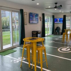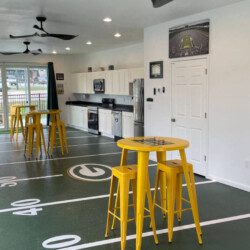 The Tailgate Zone is a private event space with a full bathroom, kitchen, rooftop deck, three large TVs, ceiling fans, and heating. This event space is not automatically included when the property is booked. It can be reserved for an additional fee, separate from the home rental.