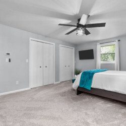 Bedroom 6: Queen bed. 43″ Smart TV. Large walk-in closet.