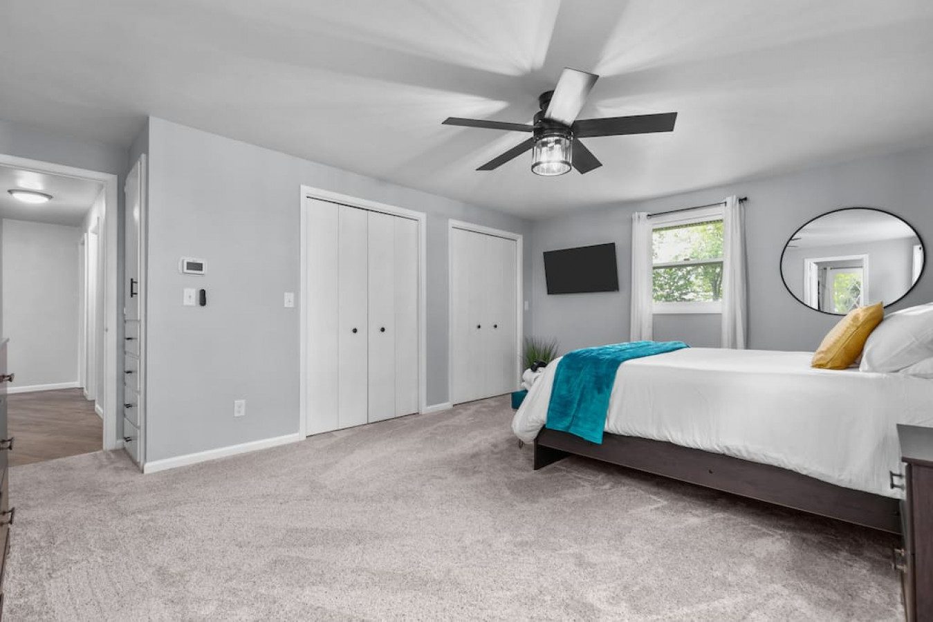 Bedroom 4: Queen bed. 43″ Smart TV. Large closet.