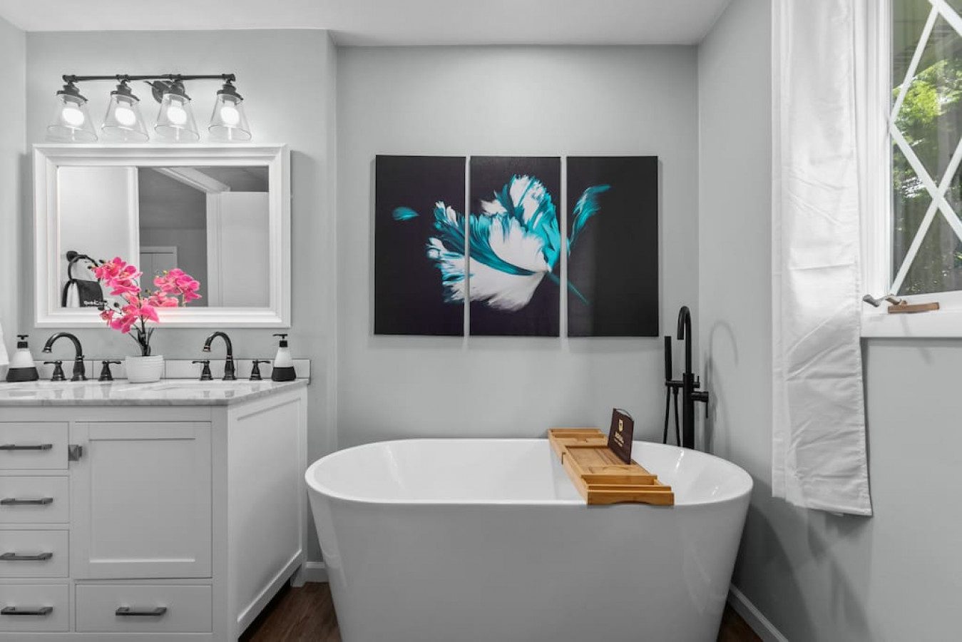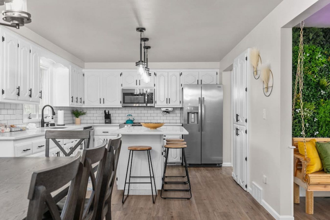 With 6 beautifully designed bedrooms, this home provides hotel-style comfort with plenty of privacy. All bedrooms have new memory foam mattresses, and four bedrooms have 43″ Smart TVs. All Smart TVs are set up in guest mode so you can login to your preferred streaming services.