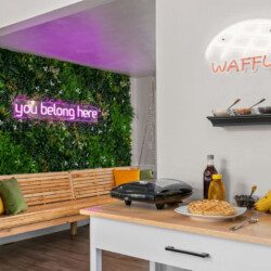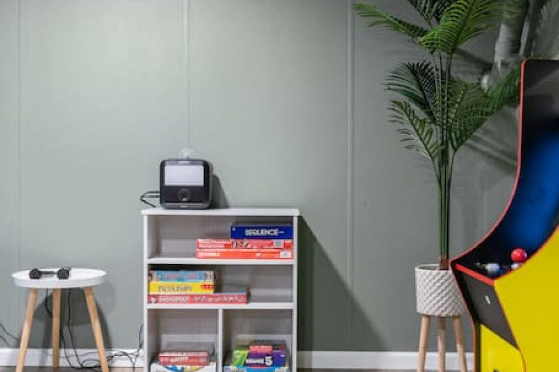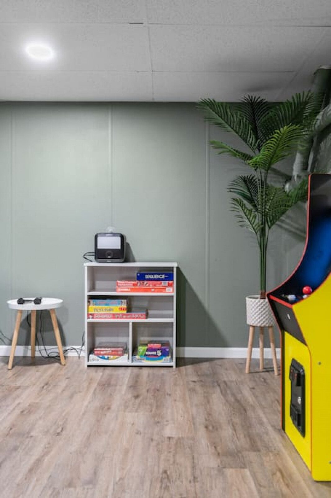 After breakfast, walk down to the children’s playroom filled with toys and games. Then gather for a photoshoot in front of the Instagrm worthy wall – perfect for capturing the whole gang! In the evenings, watch a movie on the 65″ Smart TV in the basement, or play an arcade game in the game room.
