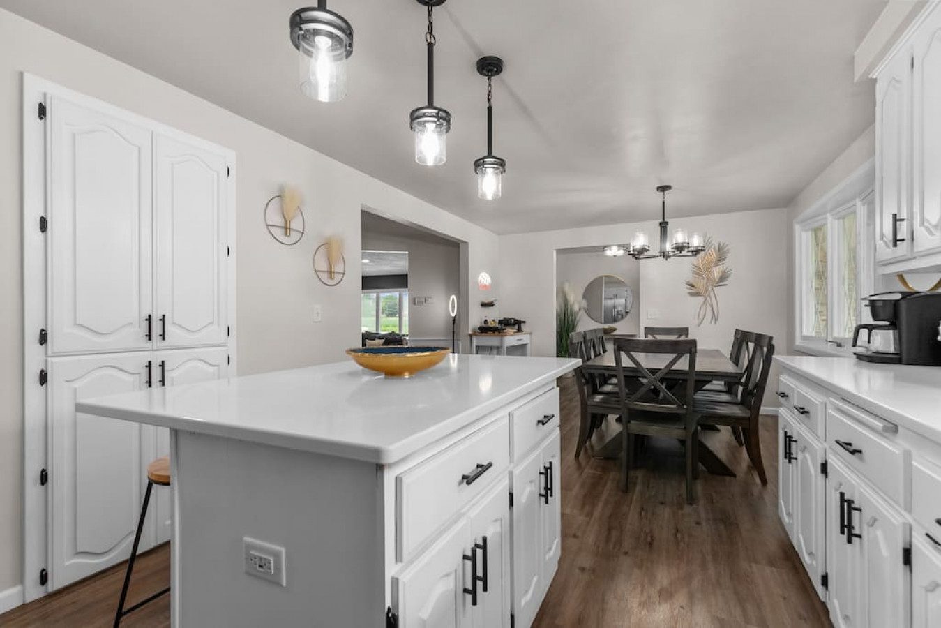 Bring out your inner chef in the fully stocked kitchen. A starter supply of paper towels, dishwasher pods, dish soap, and toilet paper are provided.