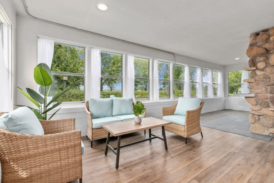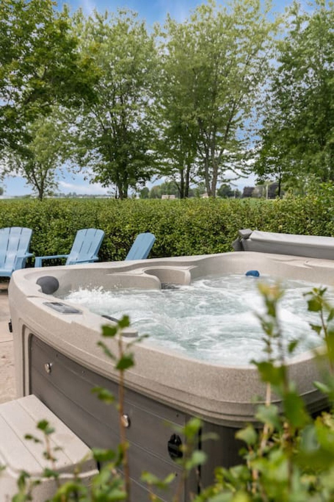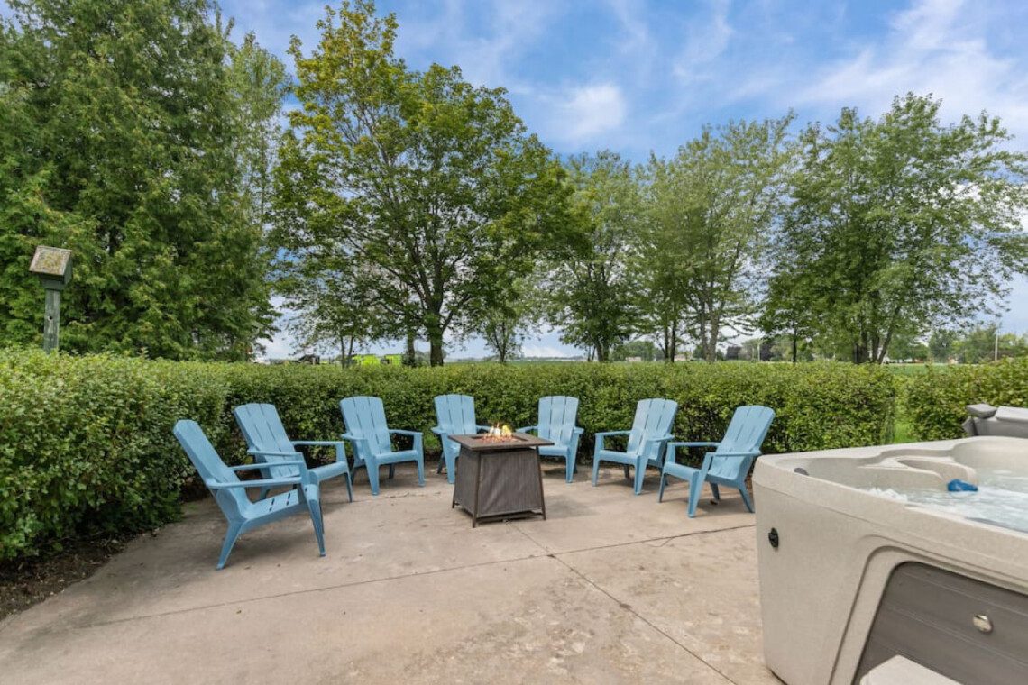 Adults can cozy up at the exterior propane firepit or relax in the hot tub on the spacious patio. Take your morning brew or evening cocktail overlooking the serene pond on the property.