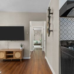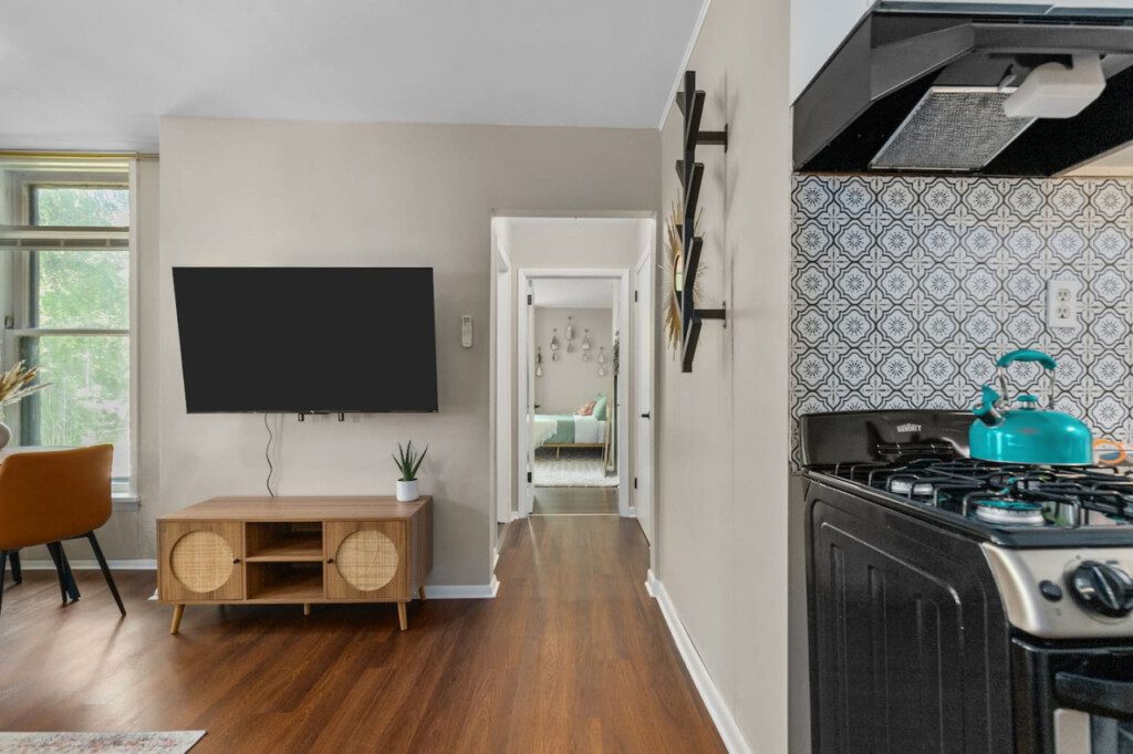 Smart TVs in the living area and bedroom are setup in guest mode so you can login to your preferred streaming services.